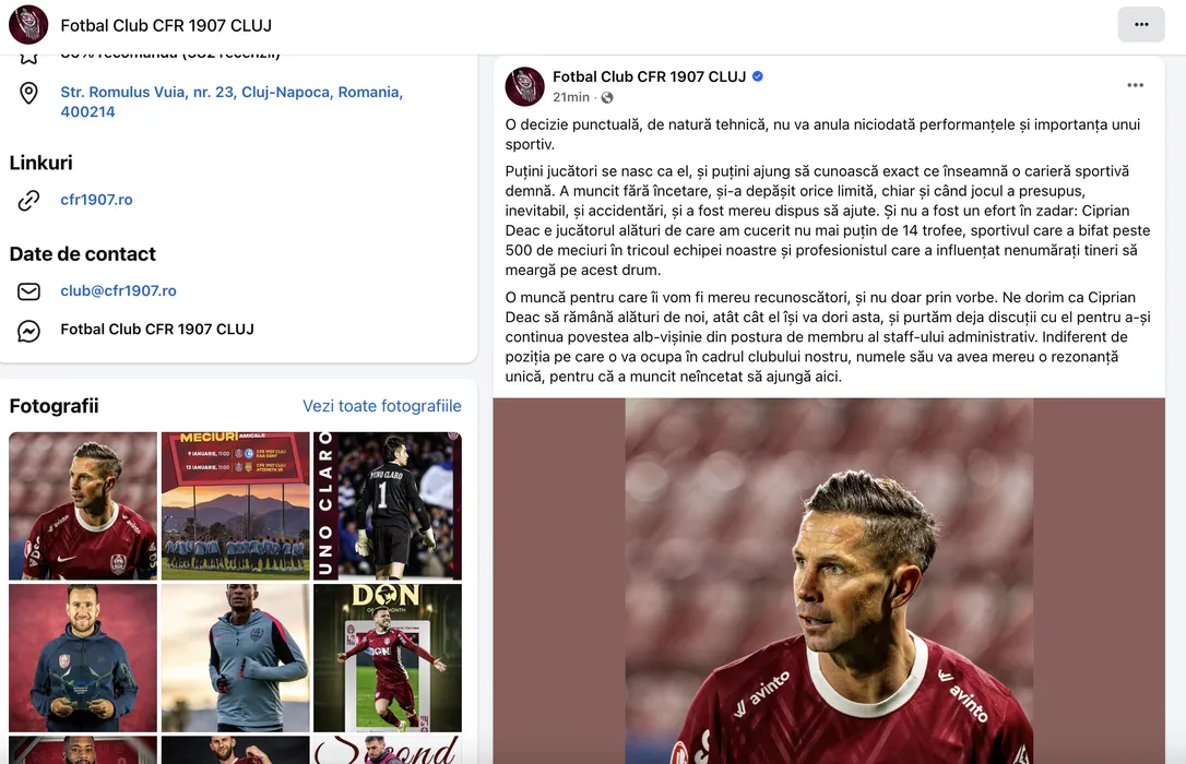 SURSA FOTO: CAPTURĂ CFR CLUJ FACEBOOK