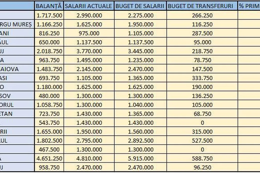 Situațiile financiare ale cluburilor din Liga 1 în Football Manager 2015. În joc, doar un club are datorii