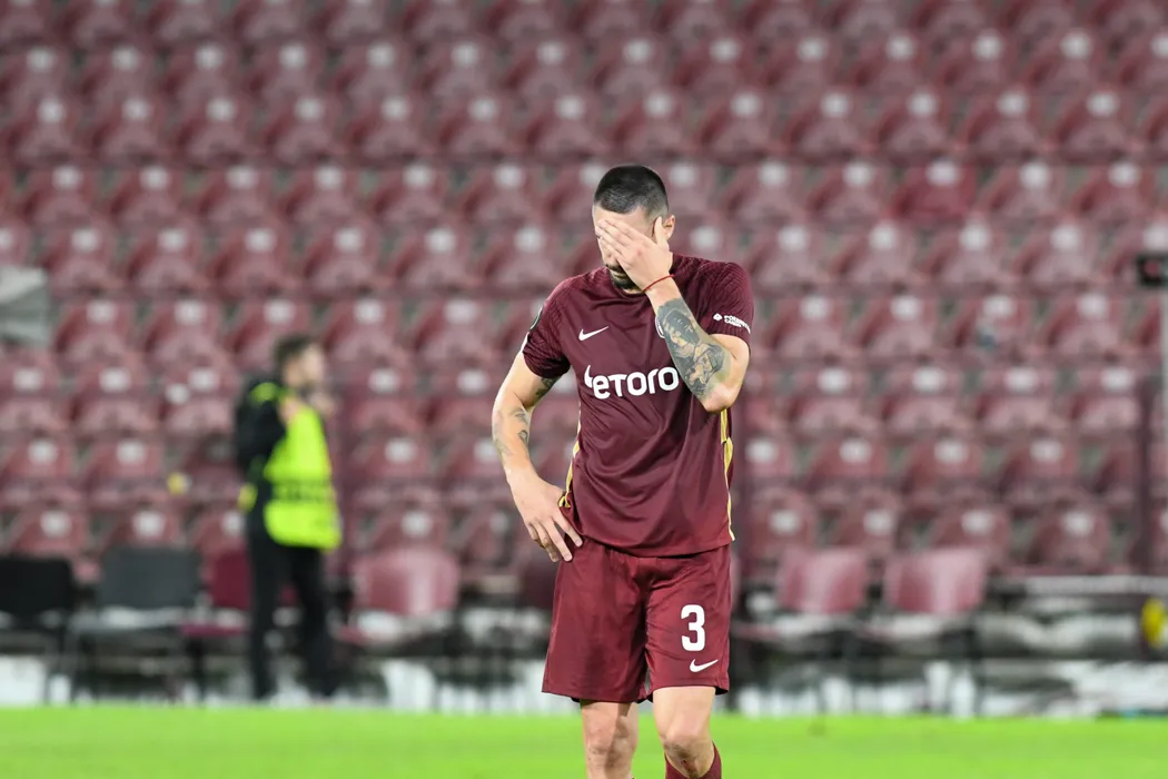 Andrei Burca, de la CFR Cluj, reactioneaza in timpul meciului de fotbal contra echipei Sivasspor din a doua etapa a grupei G din UEFA Conference League, disputat pe stadionul Constantin Radulescu din Cluj-Napoca, joi, 15 septembrie 2022. FLAVIU BUBOI / MEDIAFAX FOTO