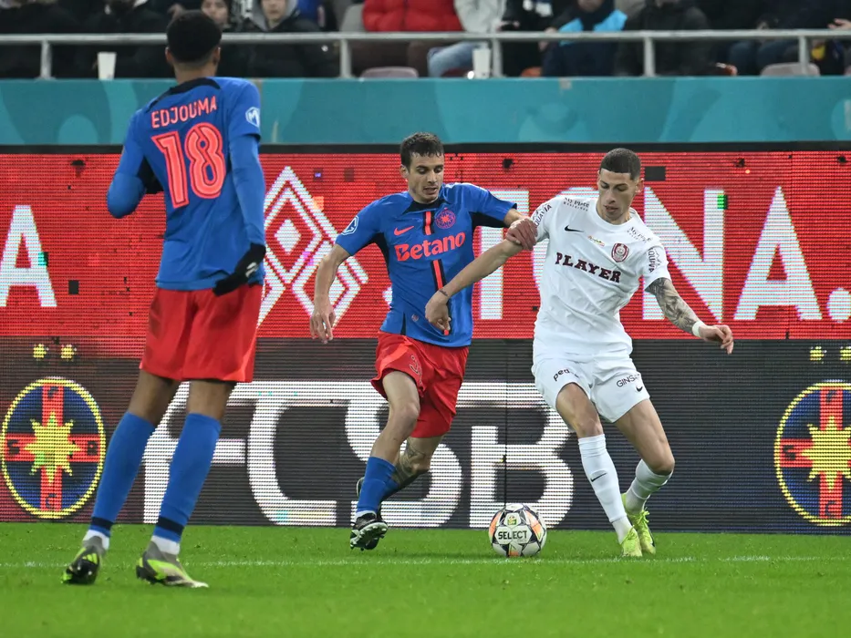 Juri Cisotti si Andres Emil Sfait in meciul de fotbal dintre FCSB si CFR Cluj, din cadrul Superligii Superbet, desfasurat pe Arena Nationala din Bucuresti, duminica 2 februarie 2025. © FOTO:Razvan Pasarica/SPORT PICTURES