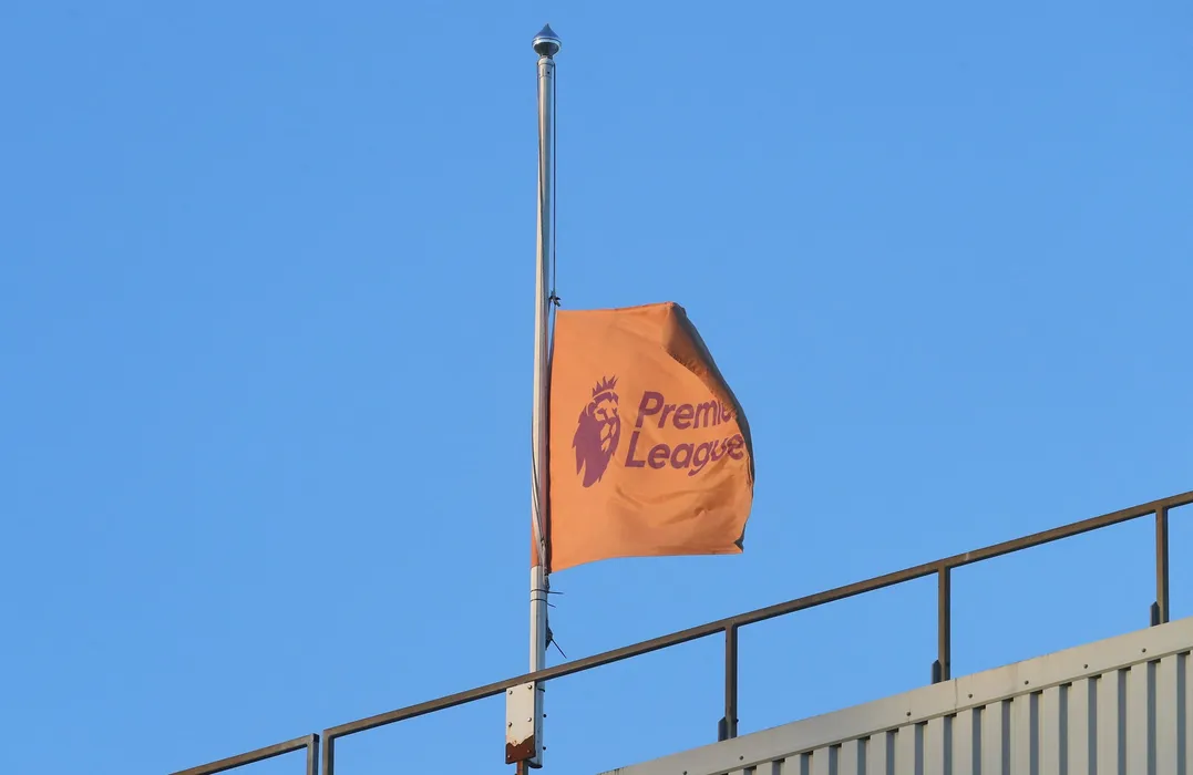 A Premier League flag is flown at half mast before the English Premier League football match between Aston Villa and Southampton at Villa Park in Birmingham, central England on September 16, 2022.,Image: 723365579, License: Rights-managed, Restrictions: RESTRICTED TO EDITORIAL USE. No use with unauthorized audio, video, data, fixture lists, club/league logos or 'live' services. Online in-match use limited to 120 images. An additional 40 images may be used in extra time. No video emulation. Social media in-match use limited to 120 images. An additional 40 images may be used in extra time. No use in betting publications, games or single club/league/player publications., Model Release: no