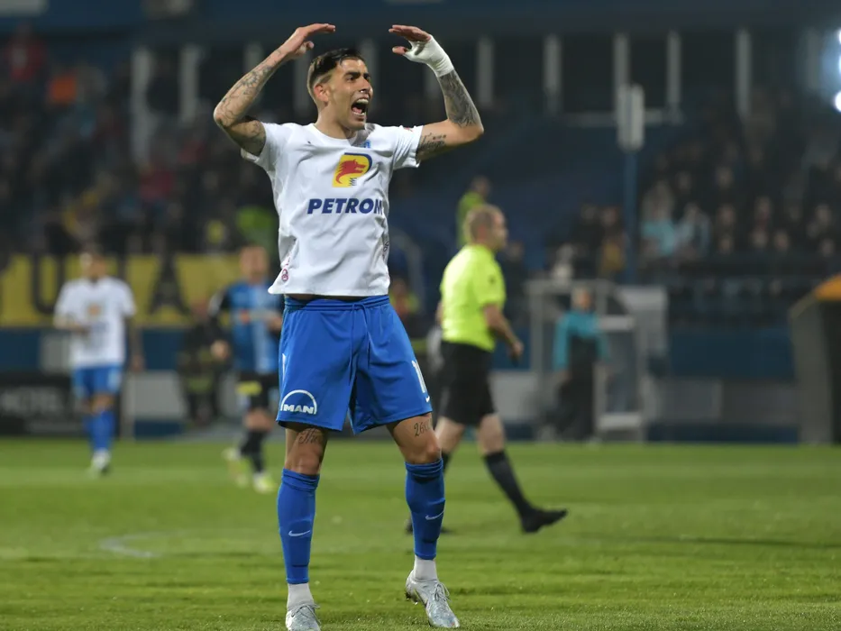 Jefte Betancor Sanchez reactioneaza in meciul de fotbal dintre Farul Constanta si Universitatea Craiova, contand pentru Play-off-ul Ligii 1 Casa Pariurilor, desfasurat pe Stadionul central al Academiei Gheorghe Hagi din Ovidiu, sambata 16 aprilie 2022. © FOTO:Razvan Pasarica/SPORT PICTURES