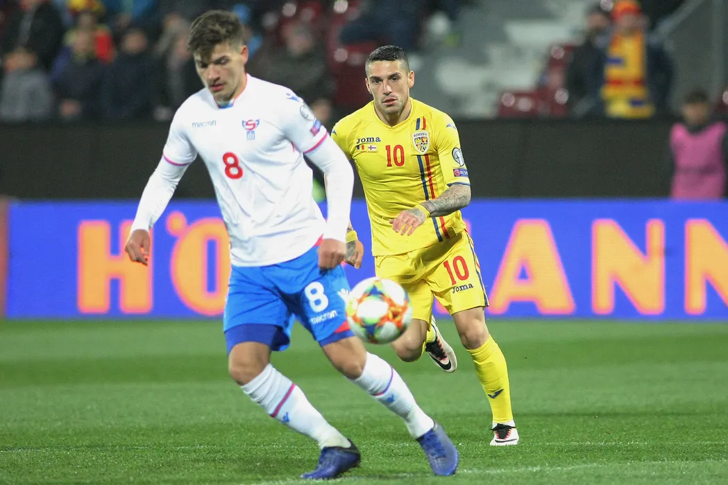 Nicolae Stanciu (D), de la nationala Romaniei, lupta pentru balon in timpul meciului de fotbal contra selectionatei Insulelor Feroe din preliminariile Euro 2020, disputat pe stadionul Dr. Constantin Radulescu din Cluj-Napoca, marti, 26 martie 2019. PAUL URSACHI / MEDIAFAX FOTO
