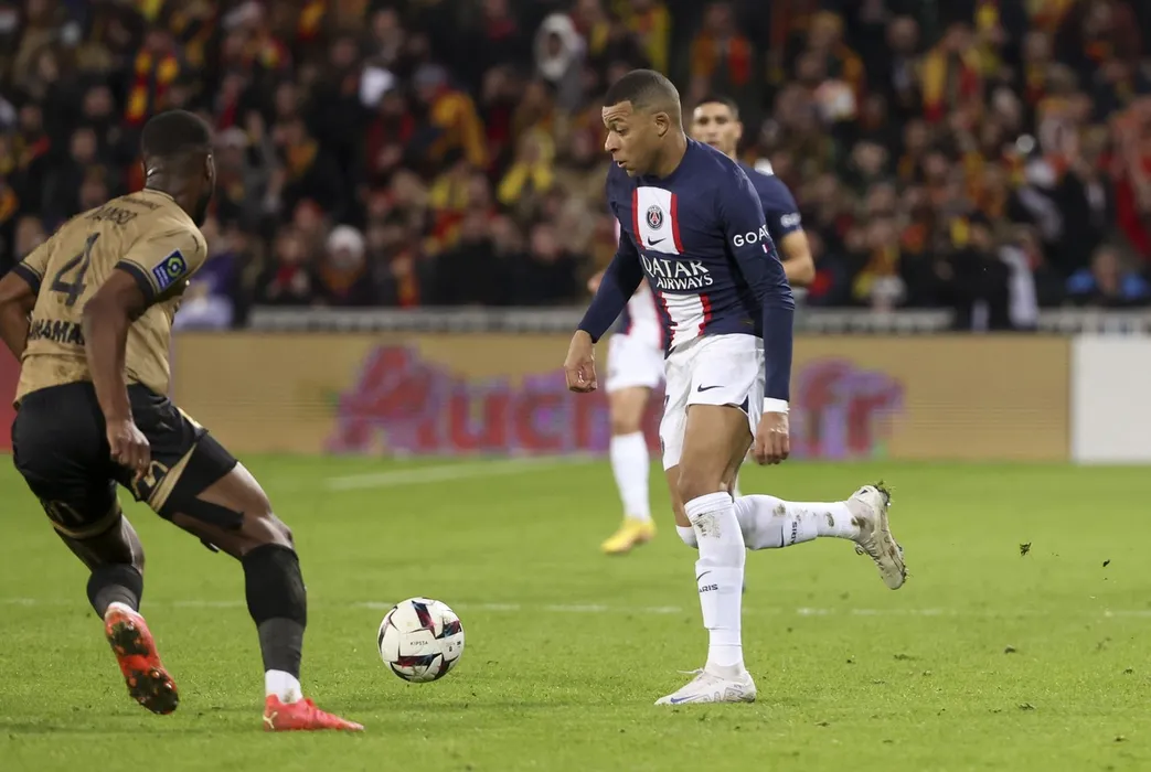 Kylian Mbappe of PSG during the French championship Ligue 1 football match between RC Lens and Paris Saint-Germain on January 1, 2023 at Bollaert-Delelis stadium in Lens, France - Photo Jean Catuffe / DPPI