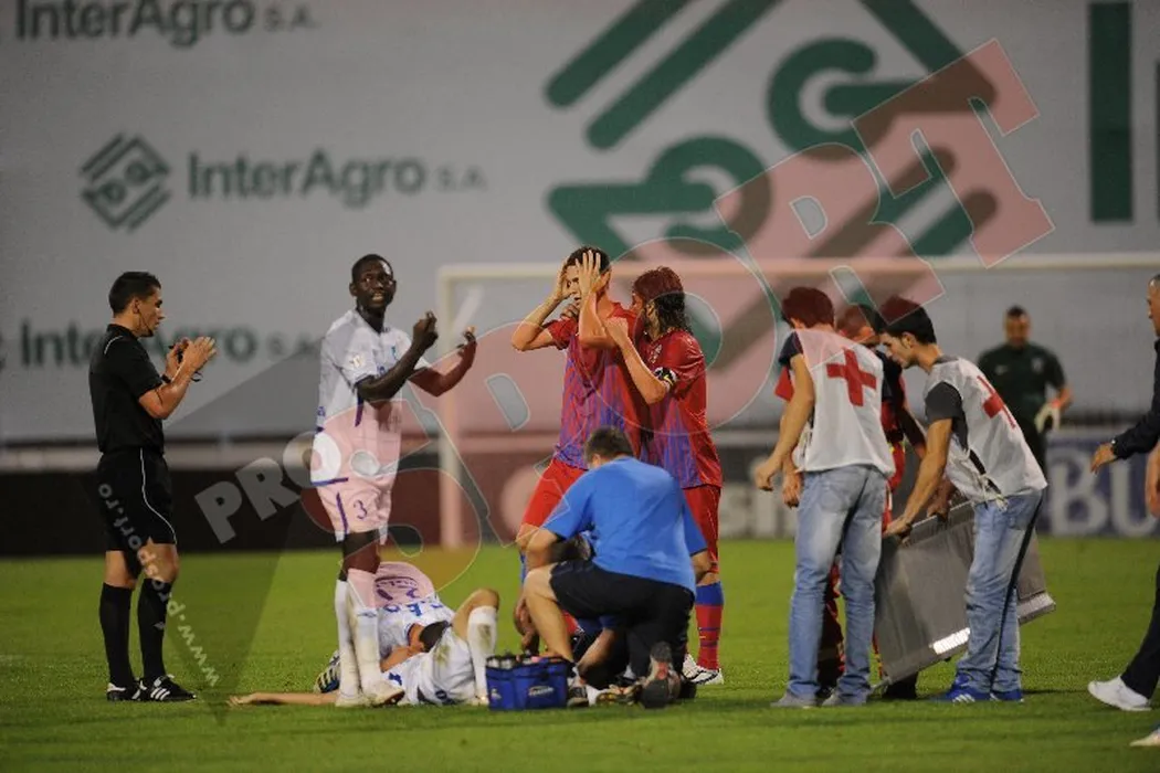 ȘOC la Steaua – Pandurii!** Accidentare ORIBILĂ‚ provocată de Gardoș! „Pandurii” s-au rugat pe gazon pentru Băcilă FOTO