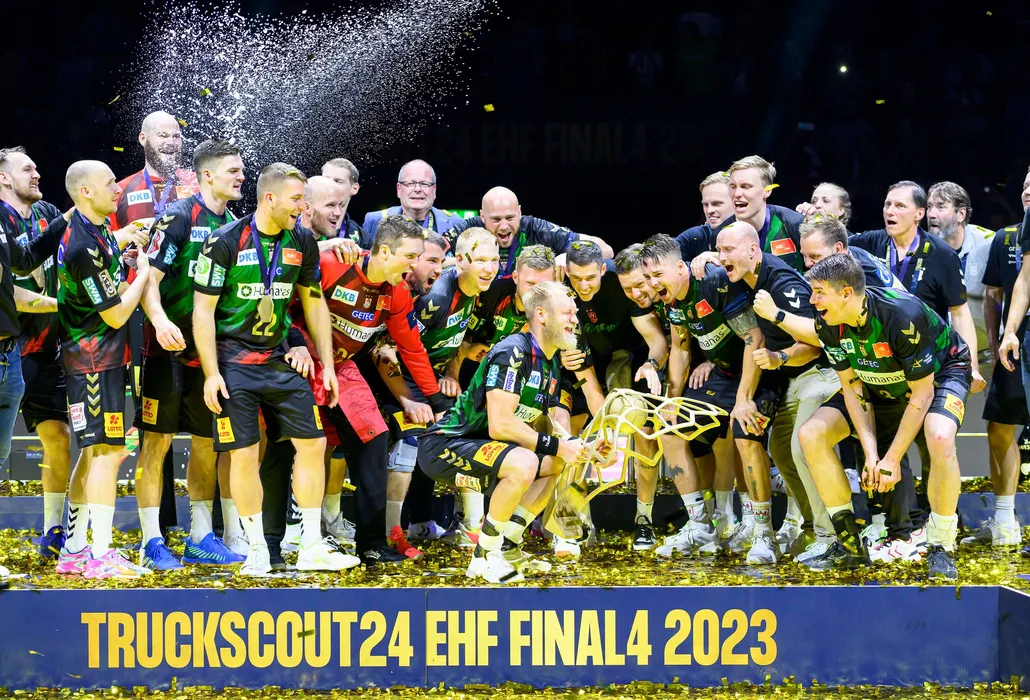 Siegerehrung, Jubel Team MD mit dem Pokal, Mannschaft, Winner, den Matthias MUSCHE MD haelt, Handball Champions League Final Four, Finale, SC Magdeburg MD vs. Barlinek Industria Kielce 30:29 n.V., am 18.06.2023 in Koeln/ Deutschland. Ă‚ *** Award ceremony, cheering Team MD with the cup, Team, Winner held by Matthias MUSCHE MD, Handball Champions League Final Four, Final, SC Magdeburg MD vs Barlinek Industria Kielce 30 29 n V , on 18 06 2023 in Cologne Germany Ă‚,Image: 784222512, License: Rights-managed, Restrictions: , Model Release: no