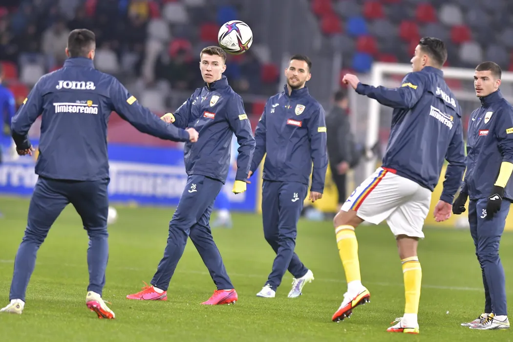 Octavian Popescu, Marius Marin si Valentin Mihăilă la incalzire la meciul amical de fotbal dintre Romania si Grecia, desfasurat pe Stadionul Steaua din Bucuresti, vineri 25 martie 2022. © FOTO:Razvan Pasarica/SPORT PICTURES