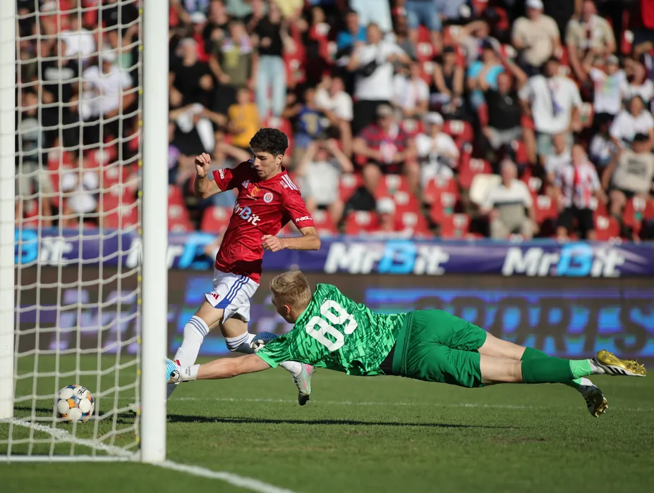 Stefan Daniel Bana inscrie si el in poarta aparata de Otto Hindrich in meciul de fotbal dintre SC Otelul Galati si FC CFR 1907 Cluj, contand pentru Superliga Superbet, desfasurat pe Stadionul Otelul din Galati, duminica 24 august 2025. © FOTO:Sorin Pana/SPORT PICTURES