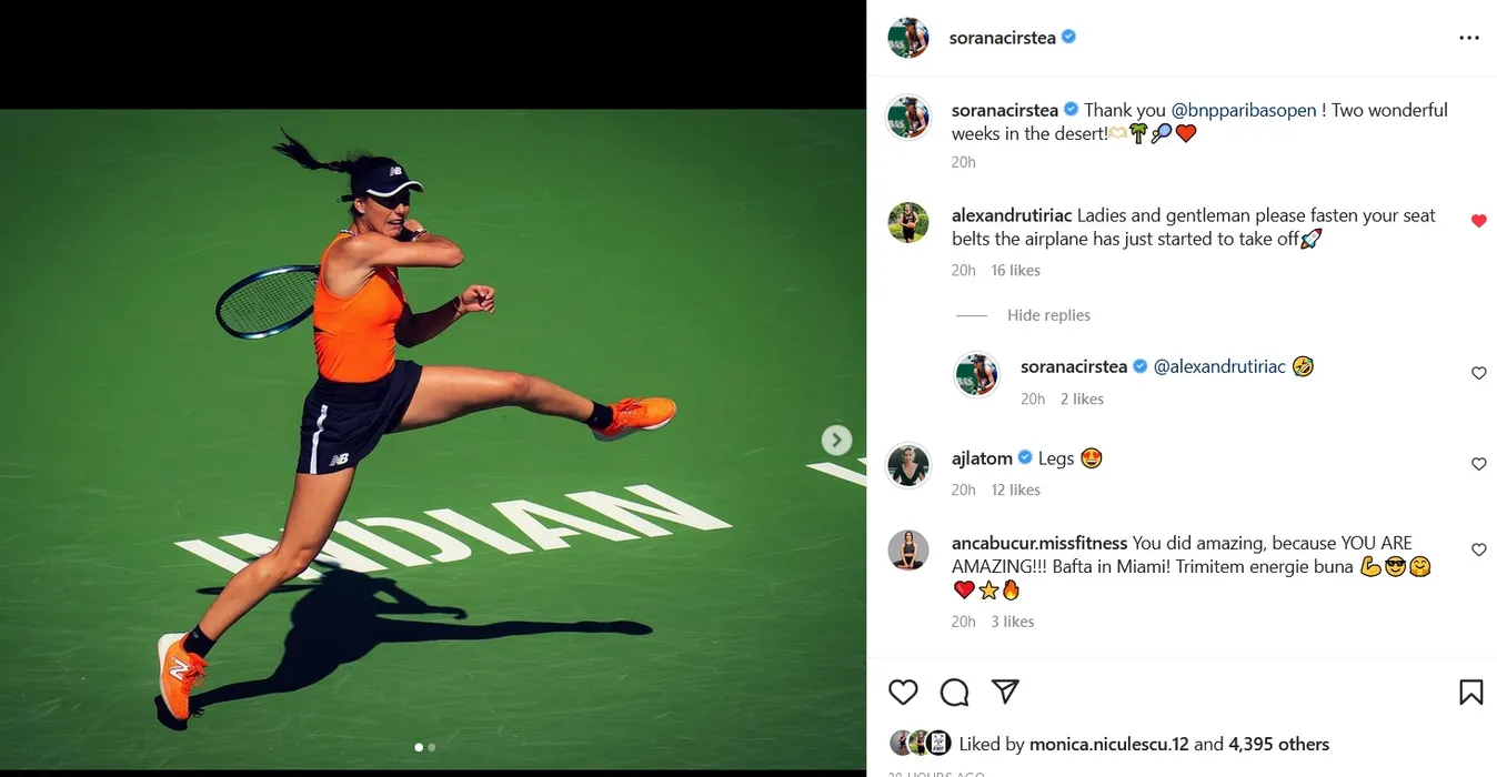 Sorana Cîrstea a început să râdă cu lacrimi! Ce i-a transmis Ion Țiriac Jr. după turneul de la Indian Wells: „Decolează avionul!”