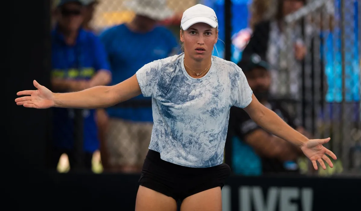 Yulia Putintseva of Kazakhstan in action during her first-round match