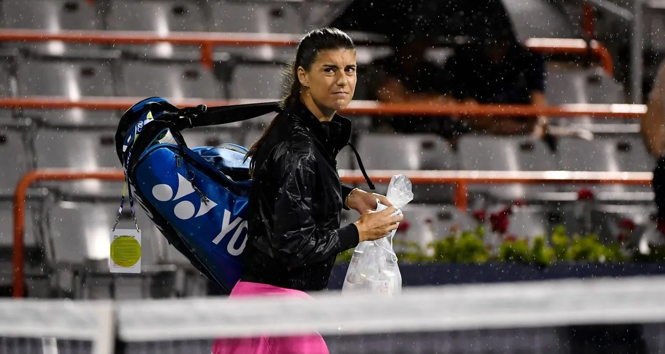 Aug 10, 2021; Montreal, Quebec, Canada; Sorana Cirstea of Romania leaves the court before her match against Victoria Azarenka of Belarus (not pictured) due to a rain delay during second round play at Stade IGA.,Image: 626497463, License: Rights-managed, Restrictions: *** World Rights ***, Model Release: no, Credit line: Profimedia