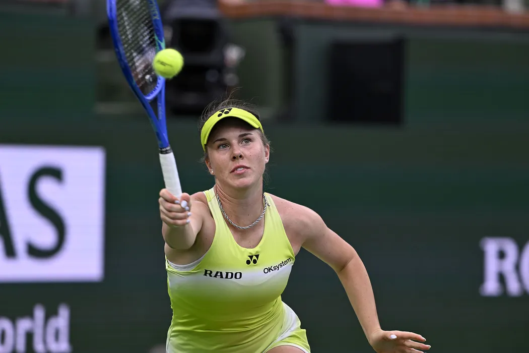 13 March 2026, US, Indian Wells: Czech tennis player Linda Noskova in action against Belarus' Aryna Sabalenka during their women's singles semifinal match of the BNP Paribas Open held at the Indian Wells Tennis Garden. Photo: Charles Baus/CSM via ZUMA Press Wire/dpa