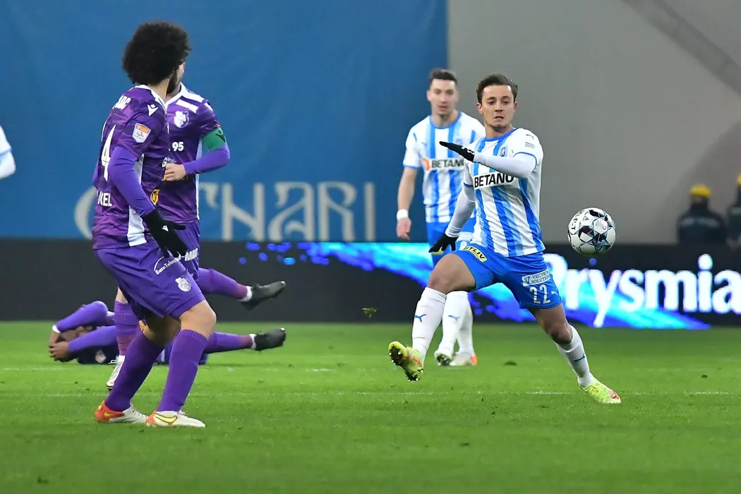 Gustavo Vagenin in meciul de fotbal Universitatea Craiova ( echipament alb albastru ) - FC Arges ( echipament violet ) etapa 1 disputat pe stadionul Ion Oblemenco din Craiova vineri 11 martie 2022 . REMUS BADEA / MEDIAFAX FOTO