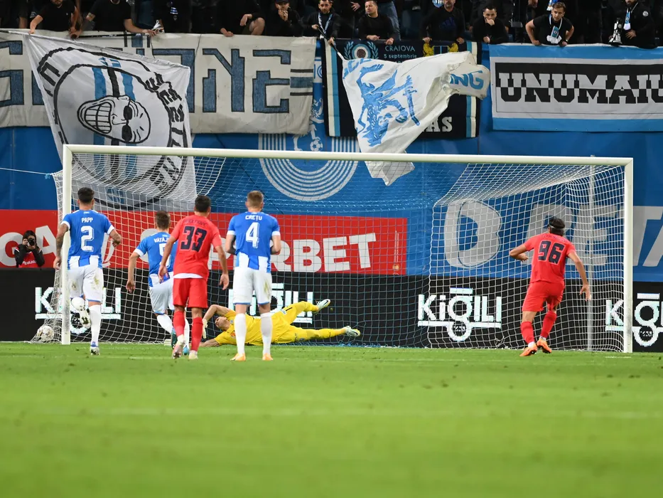 Andrea Compagno marcheaza un gol din penalty in poarta lui David Beniamin Lazar in meciul de fotbal dintre Universitatea Craiova si FCSB, contand pentru Superliga Superbet, desfasurat pe Stadionul Ion Oblemenco din Craiova, duminica 18 septembrie 2022. © FOTO:Razvan Pasarica/SPORT PICTURES