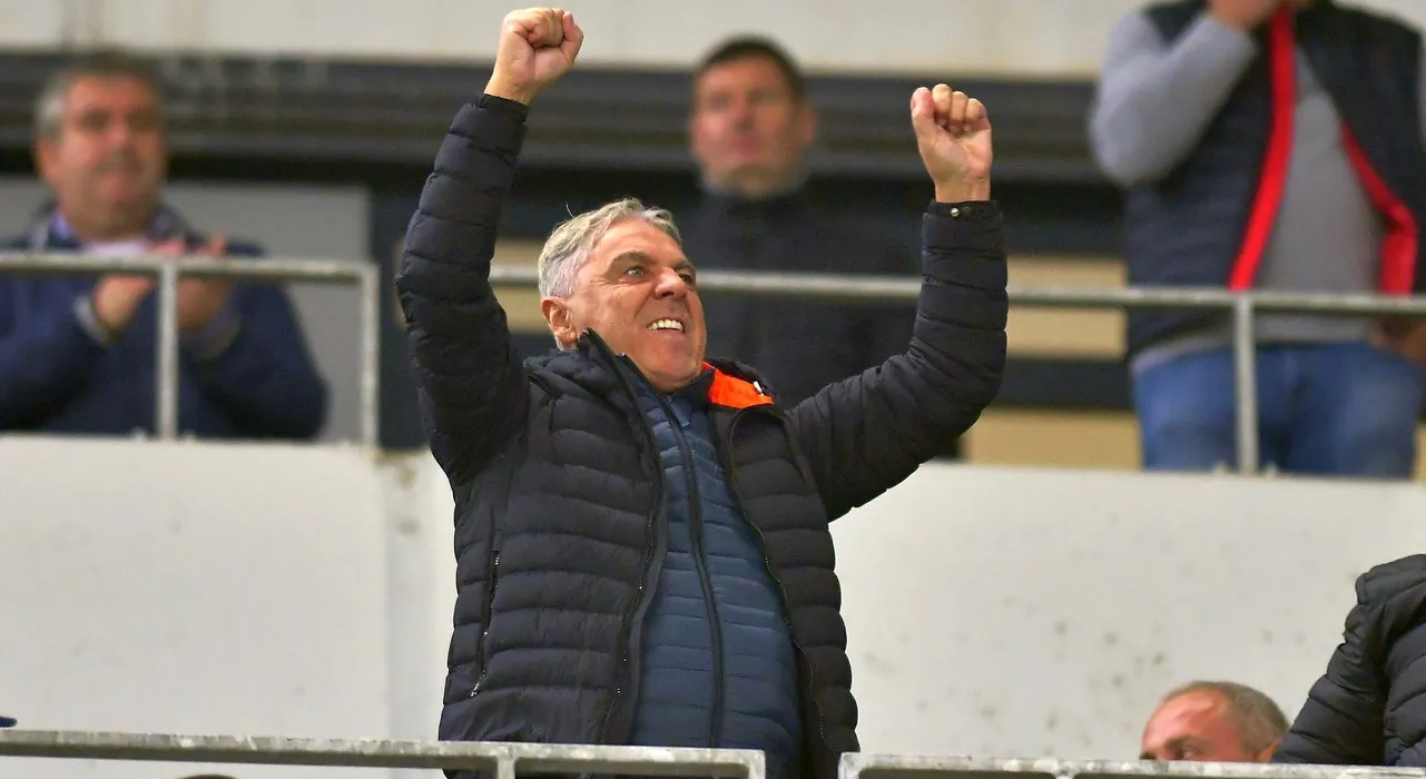 Sorin Cartu se bucura in tribuna dupa meciul de fotbal dintre FC U Craiova si Universitatea Craiova, contand pentru Liga 1 Casa Pariurilor, desfasurat pe Stadionul Ion Oblemenco din Craiova, duminica 3 octombrie 2021. © FOTO:Razvan Pasarica/SPORT PICTURES