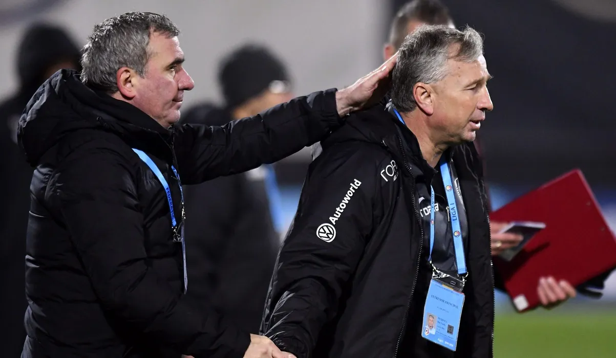 Gica Hagi il felicita pe Dan Petrescu dupa meciul de fotbal dintre CFR Cluj si FC Viitorul, contand pentru Liga 1 Casa Pariurilor, disputat pe Stadionul Dr. Constantin Radulescu din Cluj Napoca, vineri 14 februarie 2019. © FOTO:Razvan Pasarica/SPORT PICTURES