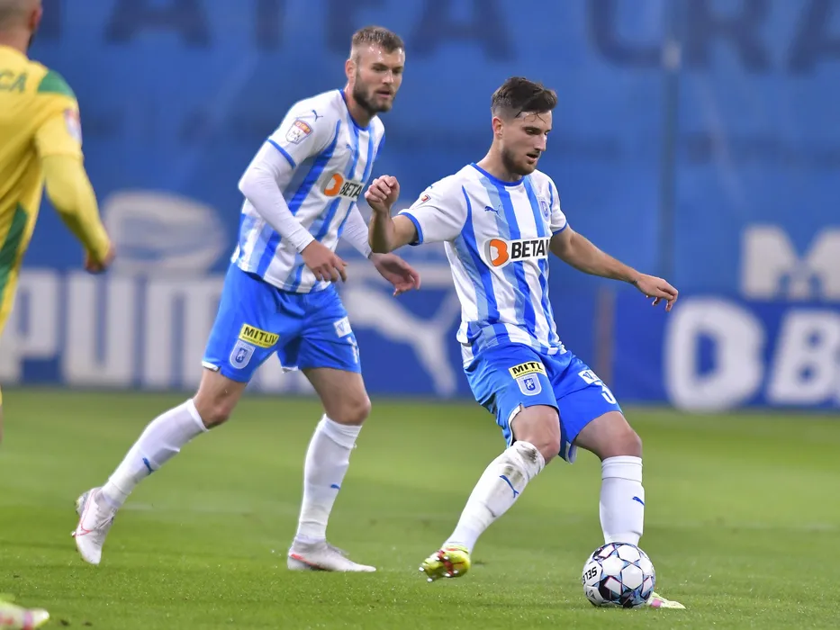 Alexandru Cretu si Mihai Cristian Capatina in meciul de fotbal dintre Universitatea Craiova si CS Mioveni, contand pentru Liga 1 Casa Pariurilor, desfasurat pe Stadionul Ion Oblemenco din Craiova, sambata 30 octombrie 2021. © FOTO:Razvan Pasarica/SPORT PICTURES