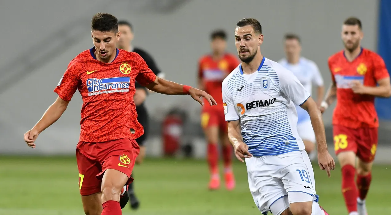 Elvir Koljic si Lucian Iulian Cristea in meciul de fotbal dintre Universitatea Craiova si FCSB, contand pentru play-off-ul Ligii 1 Casa Pariurilor, disputat fara spectatori pe Stadionul Ion Oblemenco din Craiova, duminica 12 iulie 2020. © FOTO:Razvan Pasarica/SPORT PICTURES