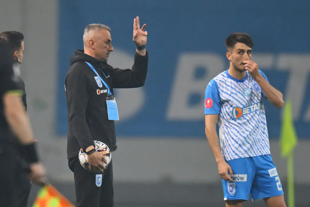 Bogdanov Ivaylo Petev alături de Ștefan Marinel Vladoiu în meciul de fotbal dintre Universitatea Craiova si Rapid Bucuresti, contând pentru Play off-ul Superligii Superbet, desfășurat pe Stadionul Ion Oblemenco din Craiova, sambata 30 martie 2024. © FOTO:SPORT PICTURES