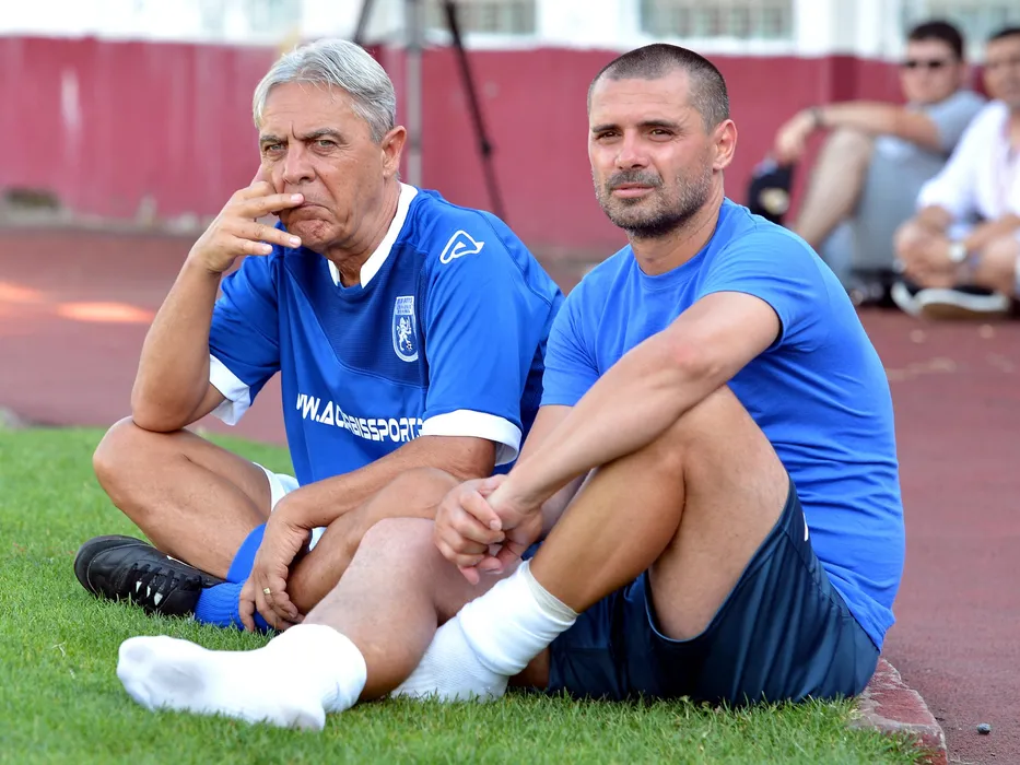 Sorin Cartu si Ciprian Mozacu urmaresc meciul de fotbal amical dintre Petrolul Ploiesti si Rapid Bucuresti disputat cu ocazia aniversarii a 94 de ani ai clubului Rapid Bucuresti, desfasurat pe stadionul Giulesti-Valentin Stanescu din Bucuresti, duminica 25 iunie 2017. Razvan Pasarica/SPORT PICTURES
