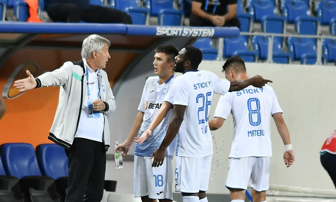 Cristiano Bergodi alaturi de Stefan Marinel Vladoiu si Stephane Acka in meciul de fotbal dintre Universitatea Craiova si FCSB, contand pentru play-off-ul Ligii 1 Casa Pariurilor, disputat fara spectatori pe Stadionul Ion Oblemenco din Craiova, duminica 12 iulie 2020. © FOTO:Razvan Pasarica/SPORT PICTURES