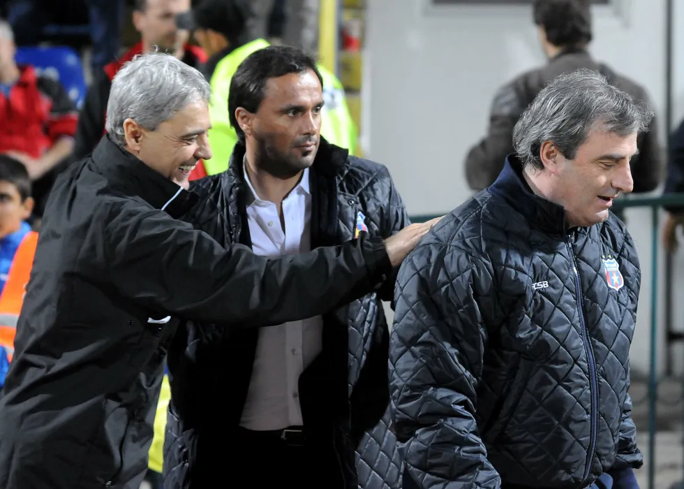 Sorin Cartu il bate pe umar pe Mihai Stoichita sub privirile lui Basarab Nica Panduru.