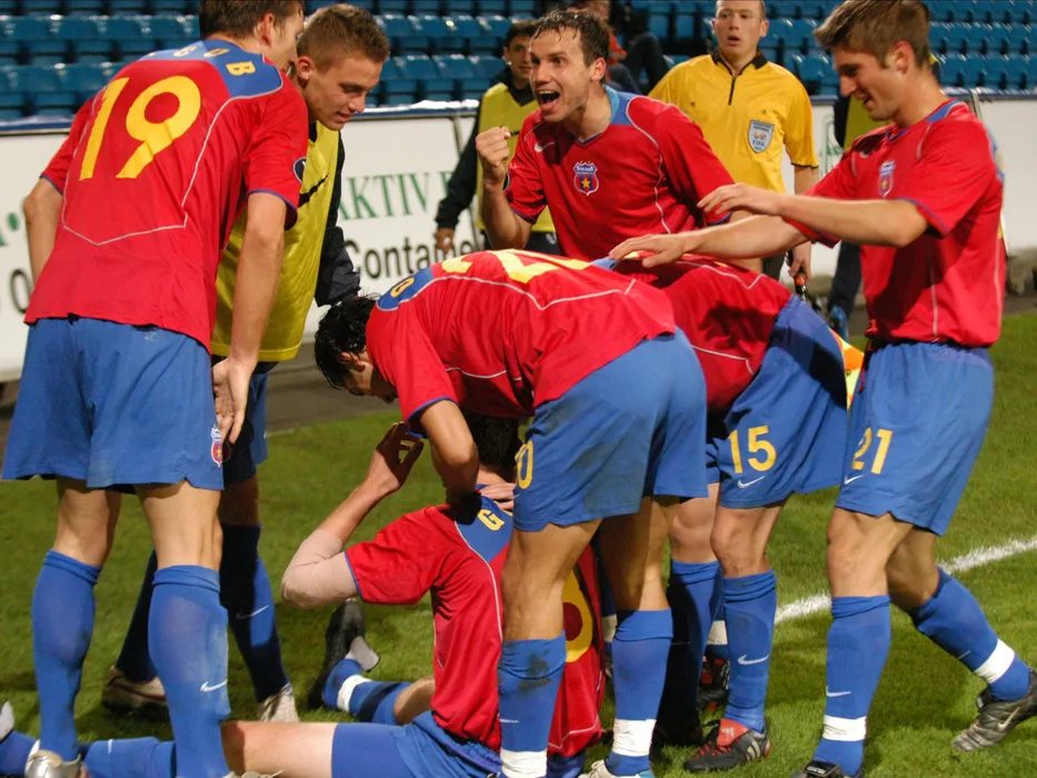 Bucurie stelista cu Alin Litu, Sorin Paraschiv, Victoras Iacob si Andrei Cristea in meciul de fotbal dintre Valerenga FC si Steaua Bucuresti, contand pentru Cupa UEFA, disputat pe Stadionul Ullevaal din Oslo, miercuri 14 septembrie 2005. © FOTO:Razvan Pasarica/SPORT PICTURES