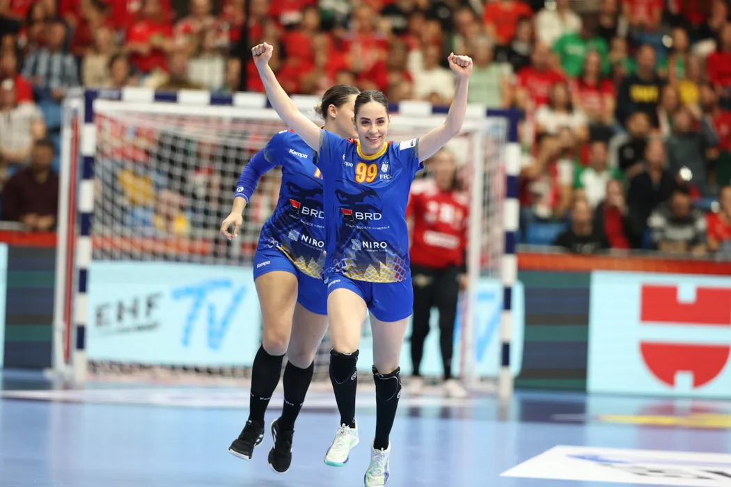 Sorina Maria Grozav după un gol marcat în meciul de handbal dintre Ungaria și România, contând pentru EHF EURO 2024, desfășurat in Sala Sporturilor Fönix Csarnok din Debrecen, duminică 8 decembrie 2024. © FOTO: Sorin PANĂ/SPORT PICTURES