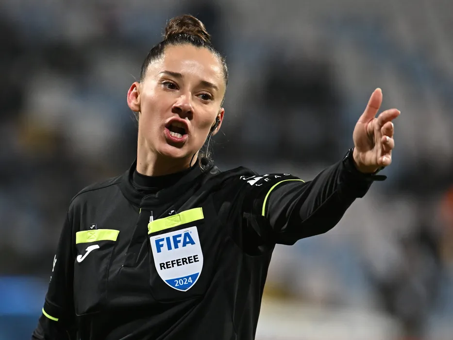 Arbitrul central Iuliana Elena Demetrescu reacționează in meciul de fotbal dintre Gloria Buzau si Petrolul Ploiesti, contand pentru Superliga Superbet, desfasurat pe Stadionul Municipal din Buzau, luni 11 noiembrie 2024. © FOTO:Razvan Pasarica/SPORT PICTURES