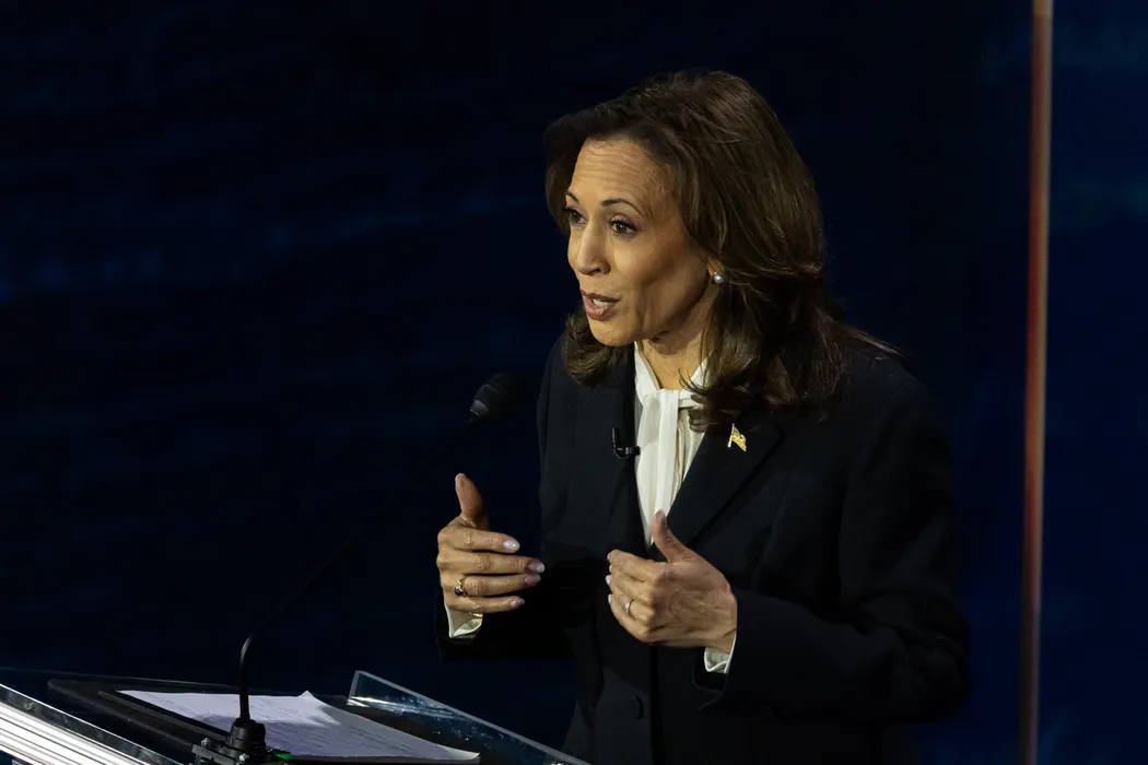 10 September 2024, US, Philadelphia: US Vice President Kamala Harris speaks on stage during during the ABC News Presidential Debate with US Former President Donald Trump. Photo: Michael Le Brecht II/ABC News/ZUMA Press Wire/dpa