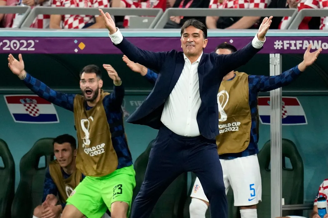 Croatia's head coach Zlatko Dalic gestures during the World Cup quarterfinal soccer match between Croatia and Brazil, at the Education City Stadium in Al Rayyan, Qatar, Friday, Dec. 9, 2022.,Image: 743556796, License: Rights-managed, Restrictions: This content is intended for editorial use only. For other uses, additional clearances may be required., Model Release: no, Pictured: Zlatko Dalic
