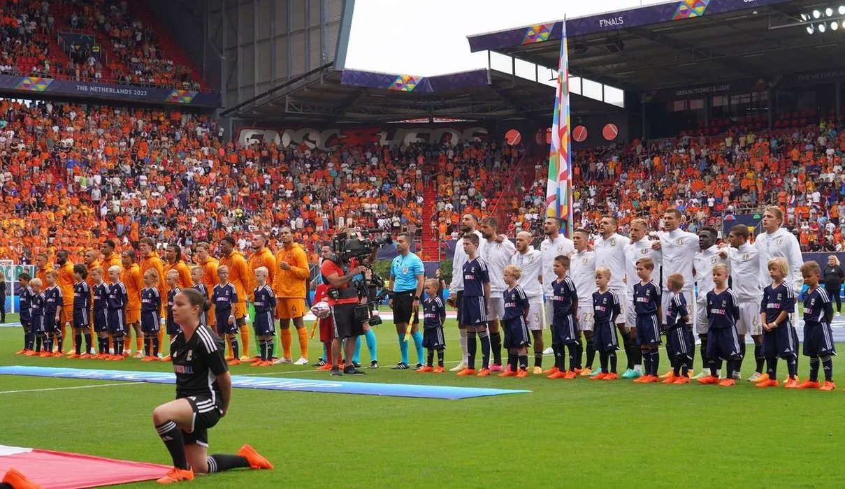 Italy and Netherlands teams lined up during Third-place match - Netherlands vs Italy, football UEFA Nations League match in Enschede, Netherlands, June 18 2023-Emmanuele Mastrodonato/IPA Sport//IPAPRESSITALY_IPA_IPA38710409/Credit:Emmanuele Mastrodonato/IP/SIPA/2306181652,Image: 784084478, License: Rights-managed, Restrictions: , Model Release: no
