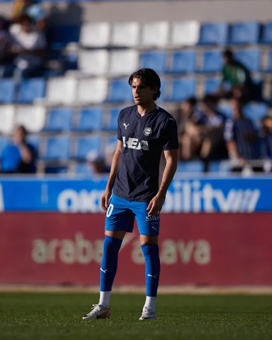 Ianis Hagi of Deportivo Alaves looks on prior the LaLiga EA Sports match between Deportivo Alaves and Real Betis Balompie at Mendizorroza on October 8, 2023, in Vitoria, Spain.