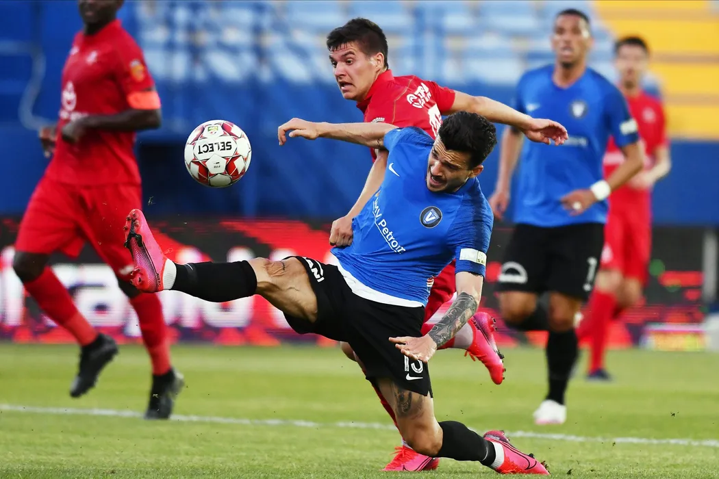 Alexandru Ionut Voda si Cosmin Gabriel Matei in meciul de fotbal dintre FC Viitorul si AFC Hermannstadt, contand pentru play-out-ul Ligii 1 Casa Pariurilor, disputat fara spectatori pe Arena centrala a Academiei Gheorghe Hagi din Ovidiu, luni 22 iunie 2020. © FOTO:Razvan Pasarica/SPORT PICTURES