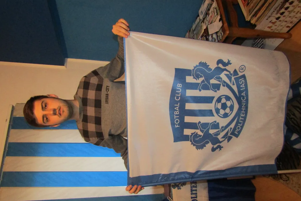 SPECIAL | Muzeul alb-albastru! Un tânăr suporter al Politehnicii Iași și-a transformat camera din apartament într-un veritabil muzeu, cu aproape 1.000 de obiecte colecționate