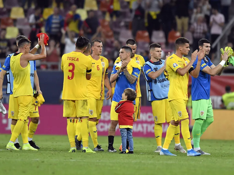 Fotbalistii romani Vlad Chiriches,Nicolae Stanciu,Catalin Bordeianu si Florin Nita saluta publicul dupa meciul de fotbal dintre Romania si Spania, din preliminariile C.E. 2020, desfasurat pe Arena Nationala din Bucuresti, joi 5 septembrie 2019. © FOTO:Razvan Pasarica/SPORT PICTURES