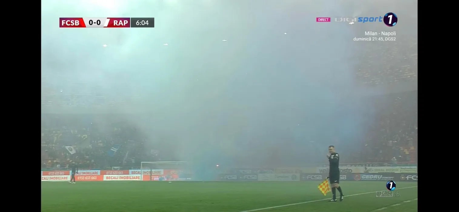 Spectacol pirotehnic ca pe vremuri în derby-ul FCSB – Rapid! Arsenalul de fumigene, torțe și petarde a întrerupt meciul de pe Arena Națională | FOTO
