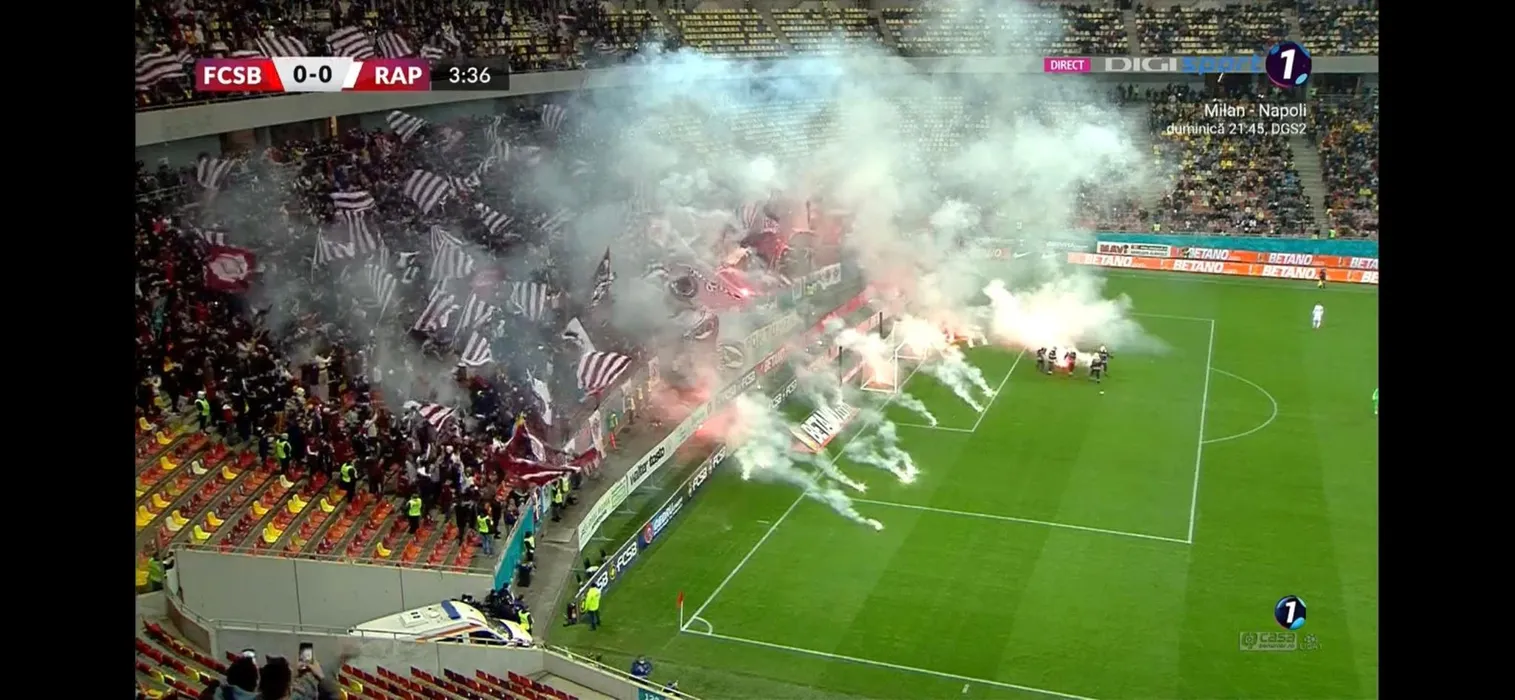 Spectacol pirotehnic ca pe vremuri în derby-ul FCSB – Rapid! Arsenalul de fumigene, torțe și petarde a întrerupt meciul de pe Arena Națională | FOTO