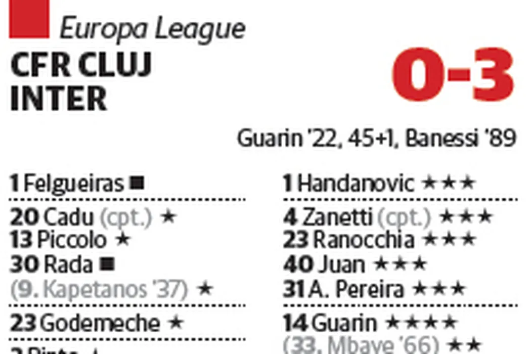 Speranțe spulberate din prima repriză!** CFR – Inter Milano 0-3!