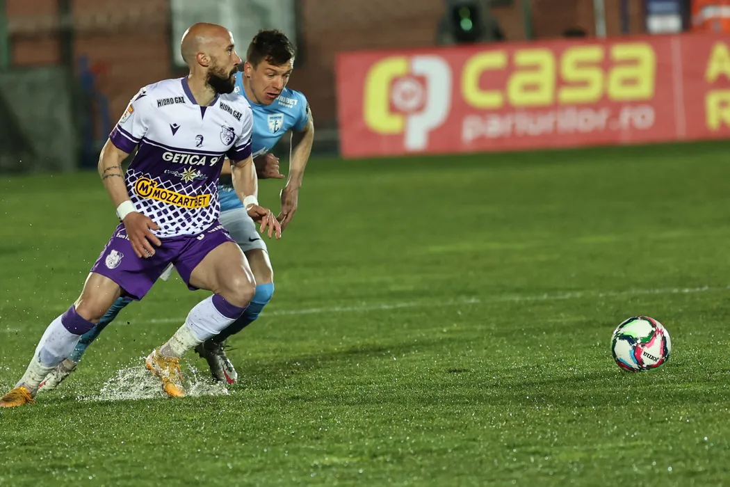 Iasmin Latovlevici si Vadim Rata in meciul de fotbal dintre FC Voluntari si FC Arges, contand pentru Cupa Romaniei, desfasurat pe Stadionul Anghel Iordanescu din Voluntari, marti 19 aprilie 2022. © FOTO:Gheorghe Fluster/SPORT PICTURES