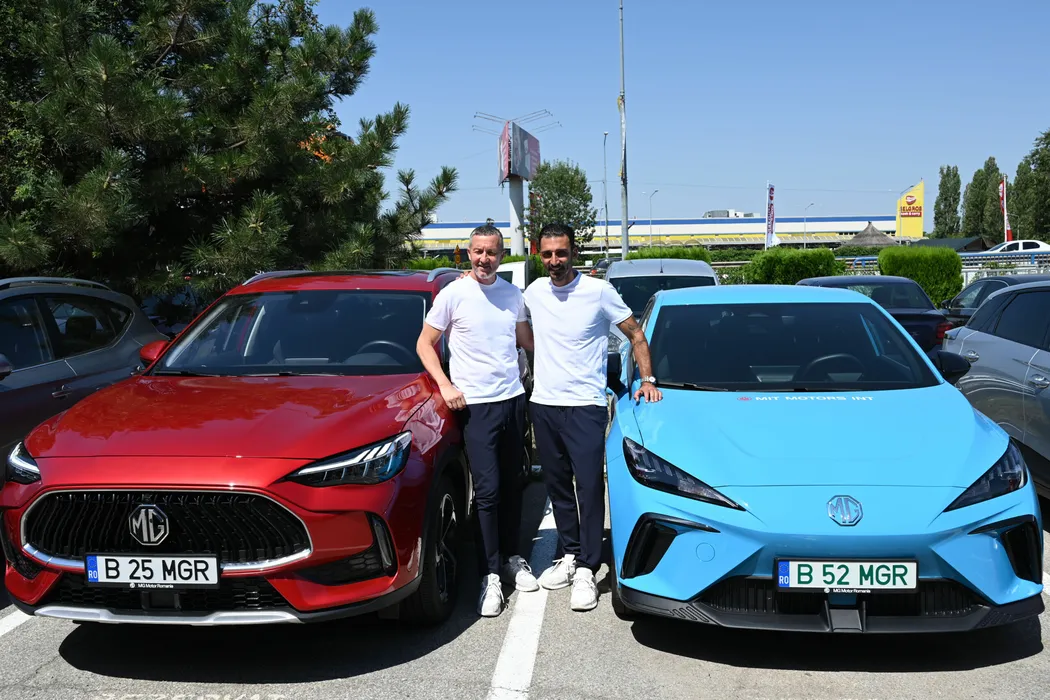 Mihai Stoica si Ellias Charalambous la evenimentul de anuntare a parteneriatului de mobilitate dintre FCSB si marca MG Motors, desfasurat la Quantum Auto Max din Bucuresti, sambata 13 iulie 2024. © FOTO:Razvan Pasarica/SPORT PICTURES