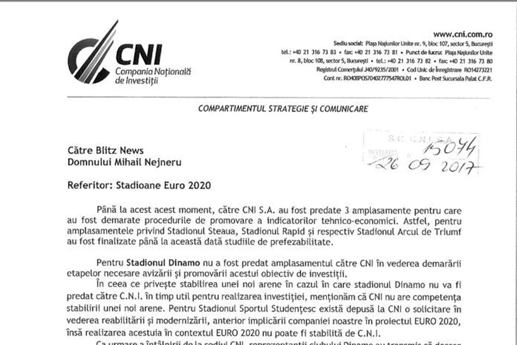 Sportul Studențesc a intrat în cursa pentru EURO! Ce spun reprezentanții CNI despre situația stadioanelor: „Nu a fost predat niciun proiect pentru arena Dinamo”