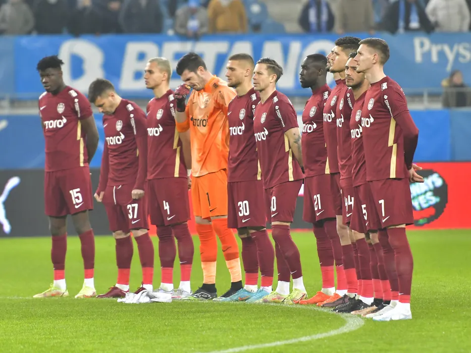 Fotbalistii clujeni la startul meciului de fotbal dintre Universitatea Craiova si CFR Cluj, contand pentru Superliga Superbet, desfasurat pe Stadionul Ion Oblemenco din Craiova, sambata 11 februarie 2023. © FOTO:Razvan Pasarica/SPORT PICTURES