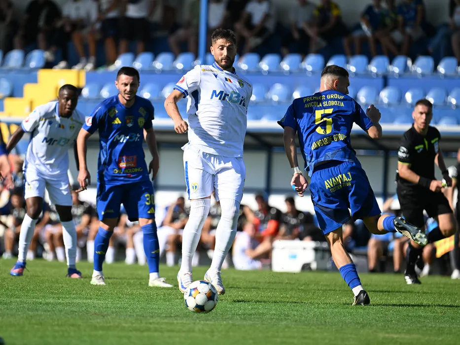 Gheorghe Teodor Grozav si Valon Hamdiji in meciul dintre Unirea Slobozia si Petrolul Ploiesti, contand pentru Superliga Superbet, desfasurat pe Clinceni Arena din Clinceni, duminica 21 septembrie 2025. © FOTO:Razvan Pasarica/SPORT PICTURES