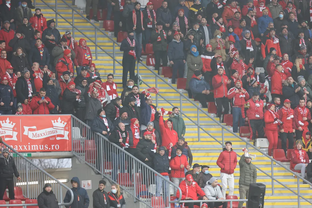 Suporteri aradeni in meciul de fotbal dintre UTA Arad si FC Botosani, contand pentru Liga 1 Casa Pariurilor, desfasurat pe Stadionul Francisc Neuman din Arad, sambata 11 decembrie 2021. © FOTO:Ciprian Petcut/SPORT PICTURES