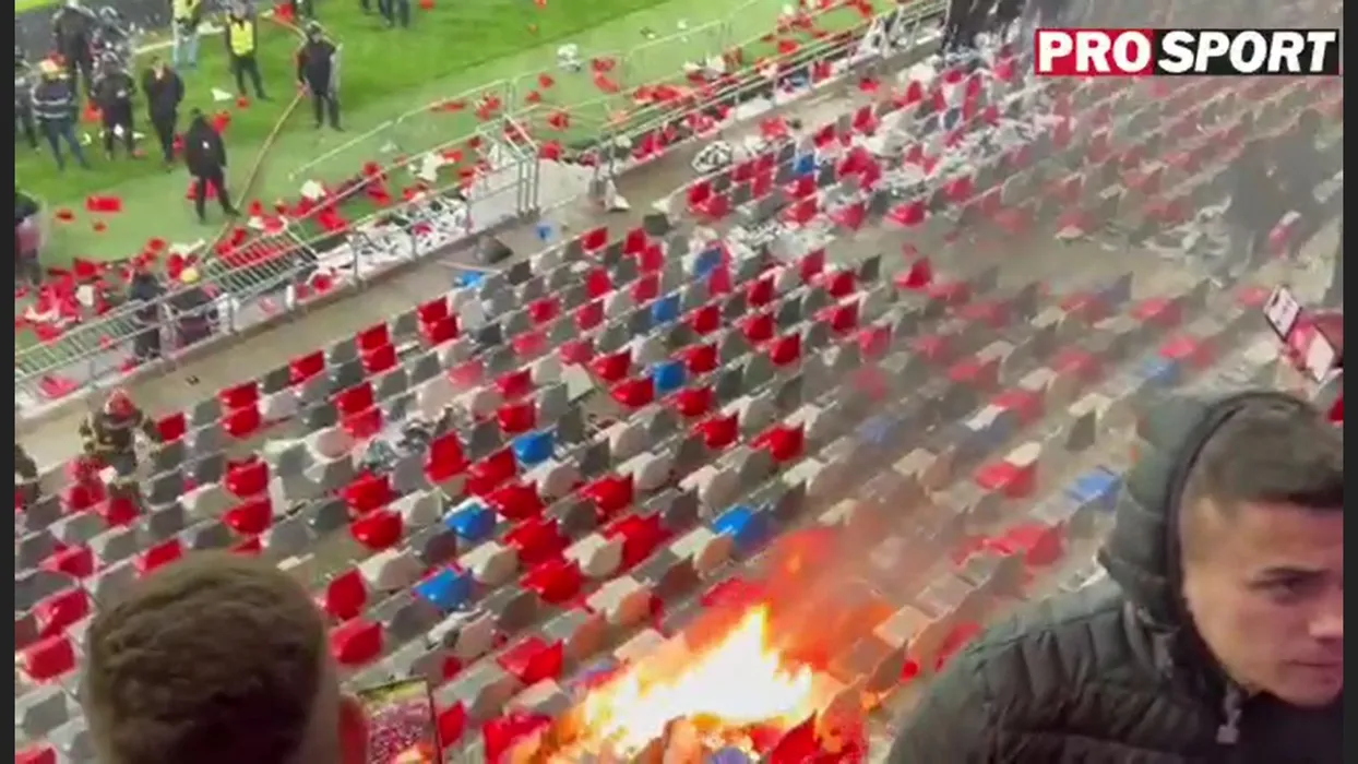 Stadionul din Ghencea, la un pas de un incendiu uriaș! Ultrașii din PCH au dat foc scaunelor din peluza oaspeților după CSA Steaua – Dinamo | VIDEO