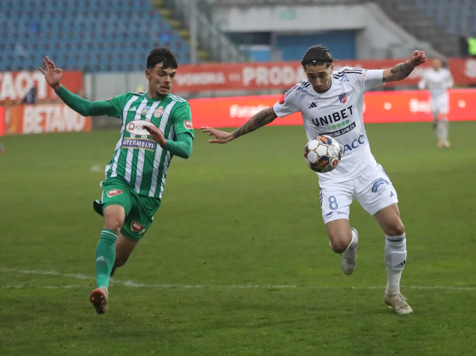 Eduard Marian Florescu și Bogdan Florin Oteliță în meciul de fotbal dintre AFC Botoșani și Sepsi OSK Sfântu Gheorghe, contând pentru SUPERLIGA SUPERBET, desfășurat pe Stadionul Municipal din Botoșani, joi 29 februarie 2024. © FOTO: Ionuț TABULTOC/SPORT PICTURES