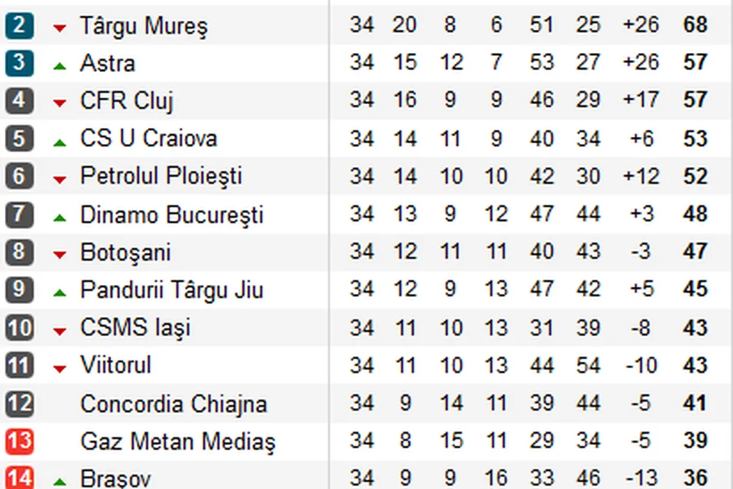 STATISTICĂ‚ | 700 de goluri s-au înscris în sezonul 2014-2015 al Ligii 1. Media: 20,6 pe etapă. Steaua, cele mai multe goluri în deplasare