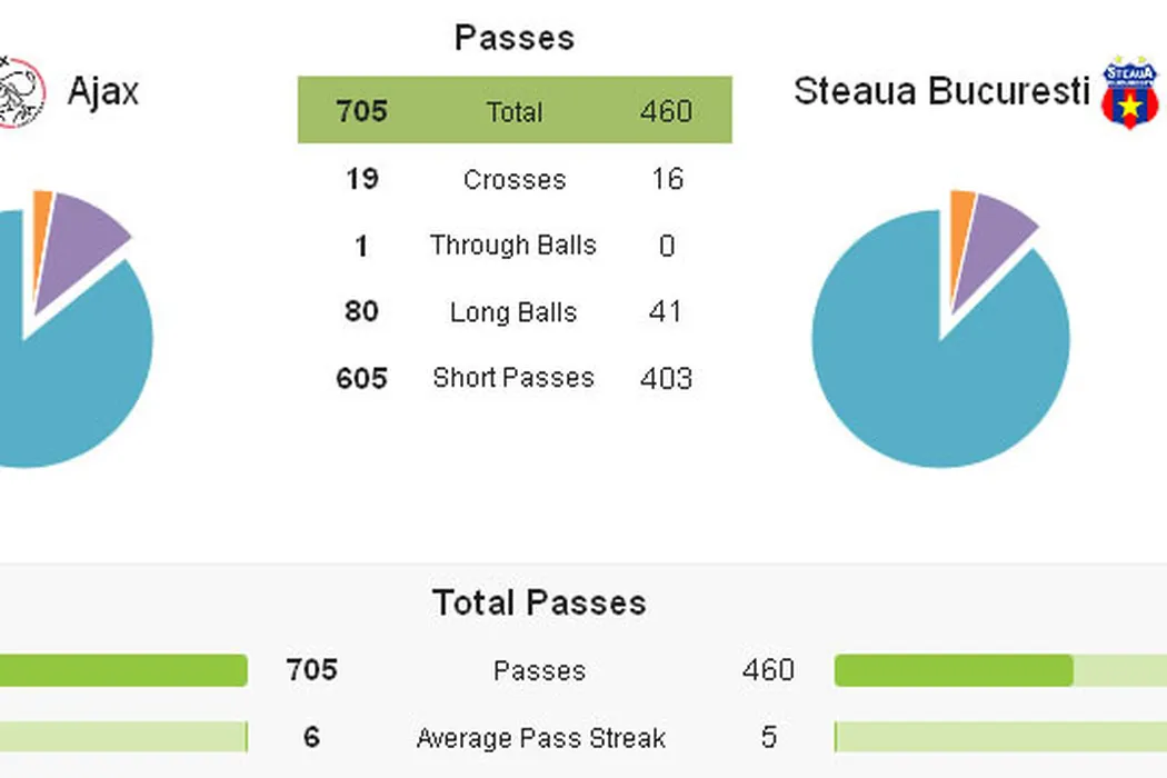 Statistică Ajax – Steaua!** Nikolic a făcut risipă de efort, olandezii au împins jocul până în careul roș-albaștrilor! Ce spun cifrele