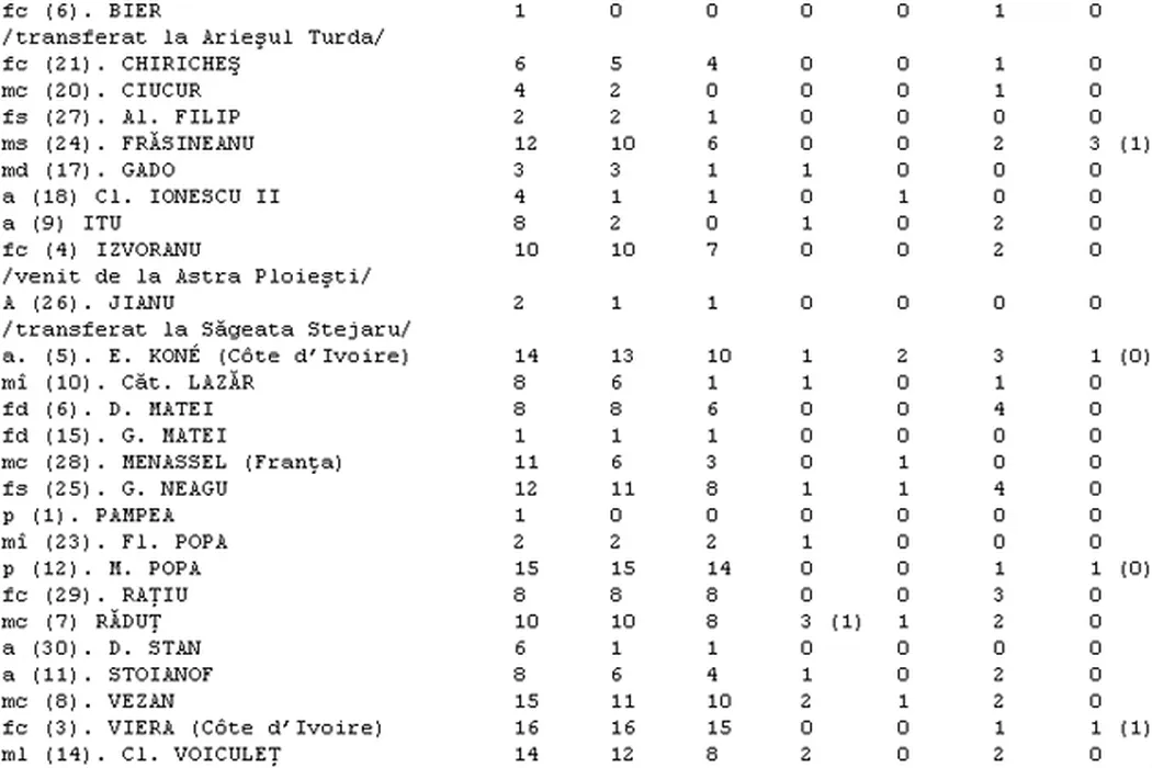 STATISTICĂ‚ LIGA I** Cifrele complete ale turului